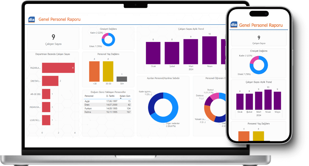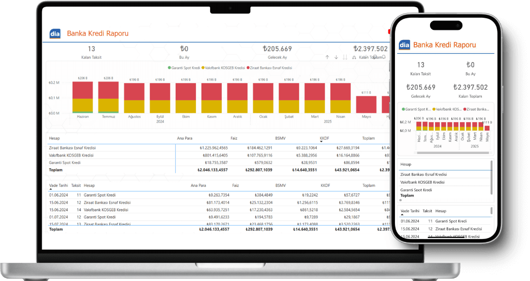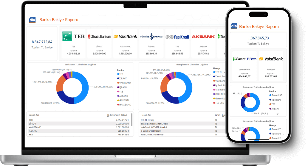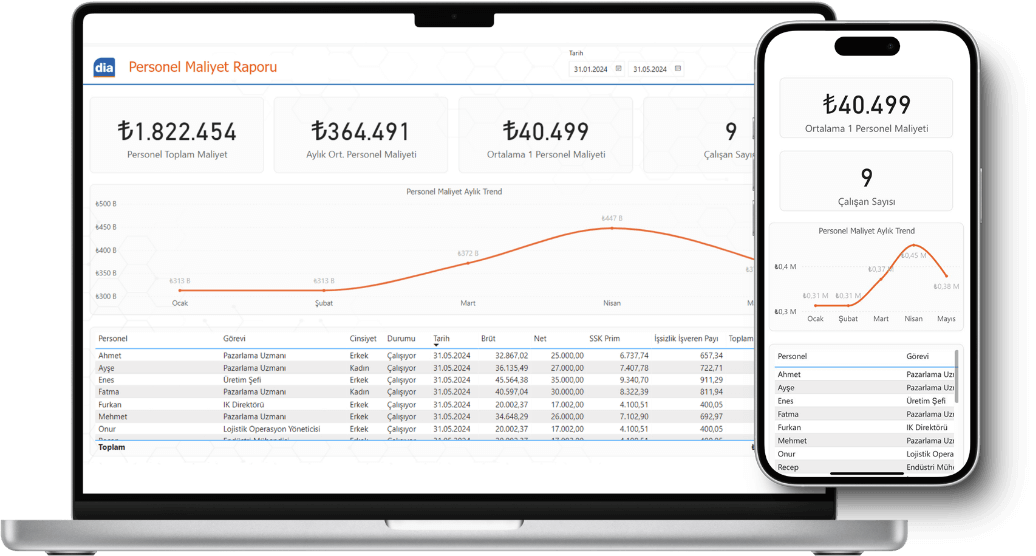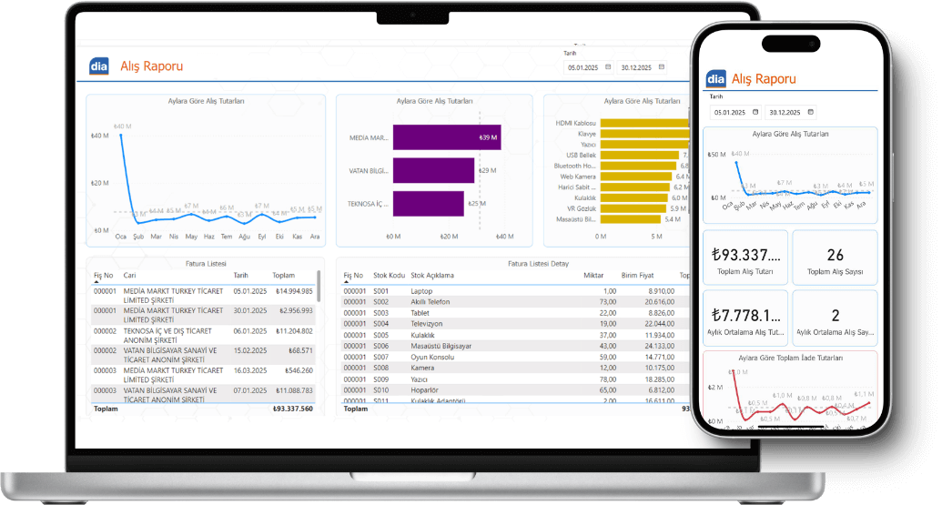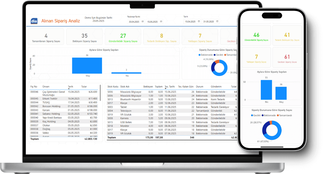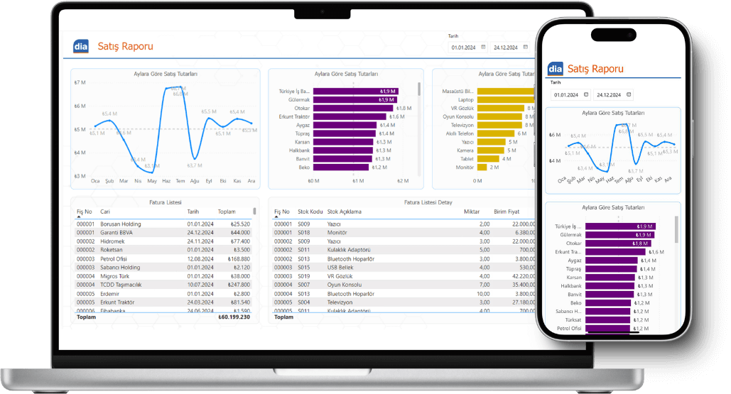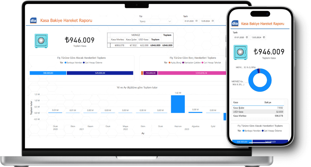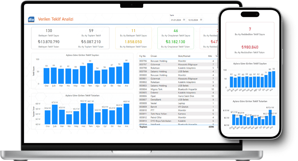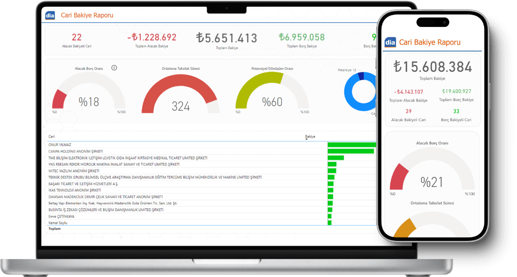 - DİA kullanıcıları için özel olarak hazırlanmış raporlar, işletmelerin verimliliğini artırmalarına, karar alma süreçlerini iyileştirmelerine ve stratejik yönetimlerini desteklemelerine yardımcı olur.