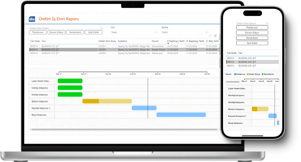 BİLGİGelişmiş reçete, operatör bazında işlem takibi ve daha birçok özelliği ile DİA Üretim Yönetimi yanınızda!